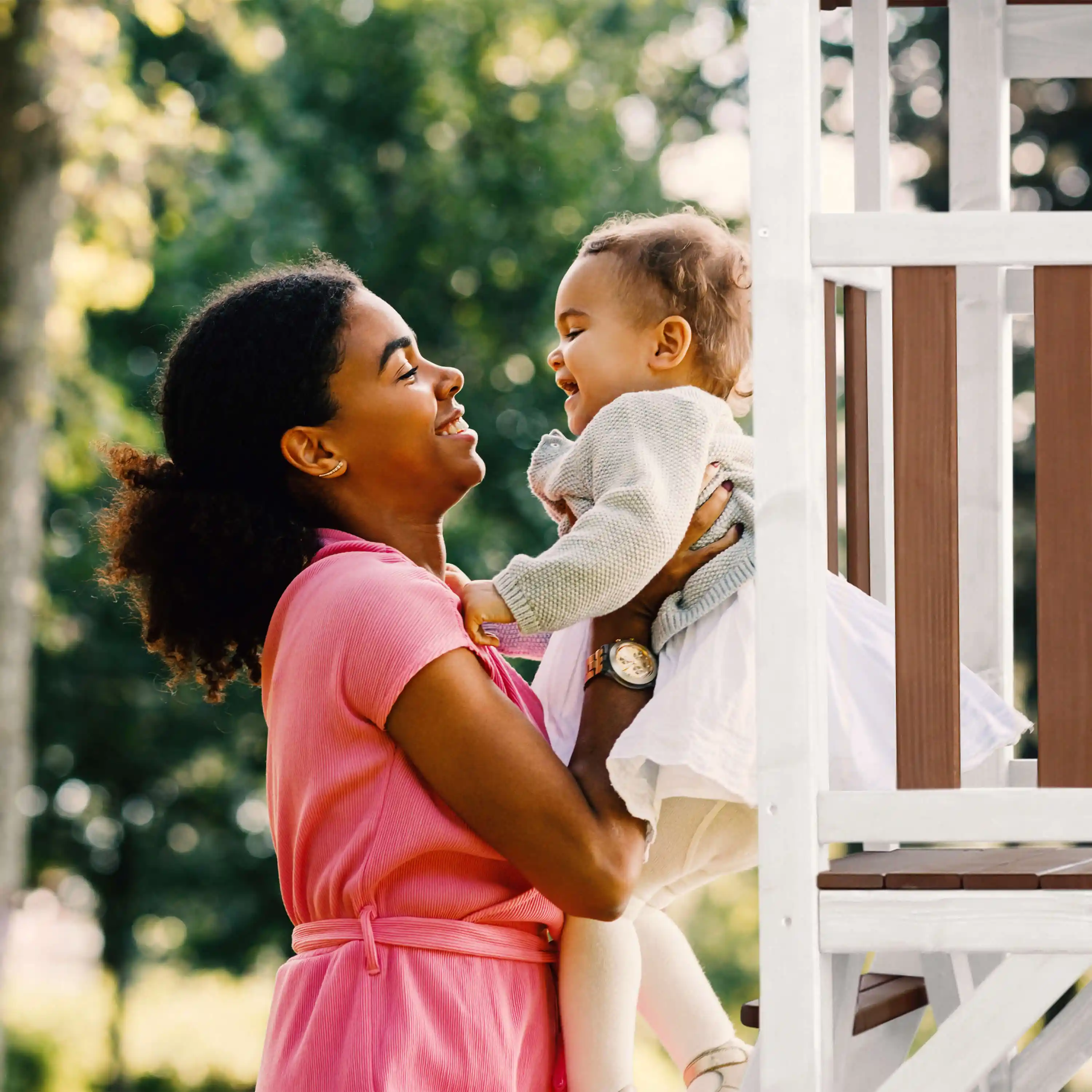 The AXI ""Beach"" series consists of various types of play towers with many options. There are play towers with or without climbing frames and swings. The play towers can also be expanded with various AXI accessories such as a chalkboard, letterbox, binoculars or flower box.