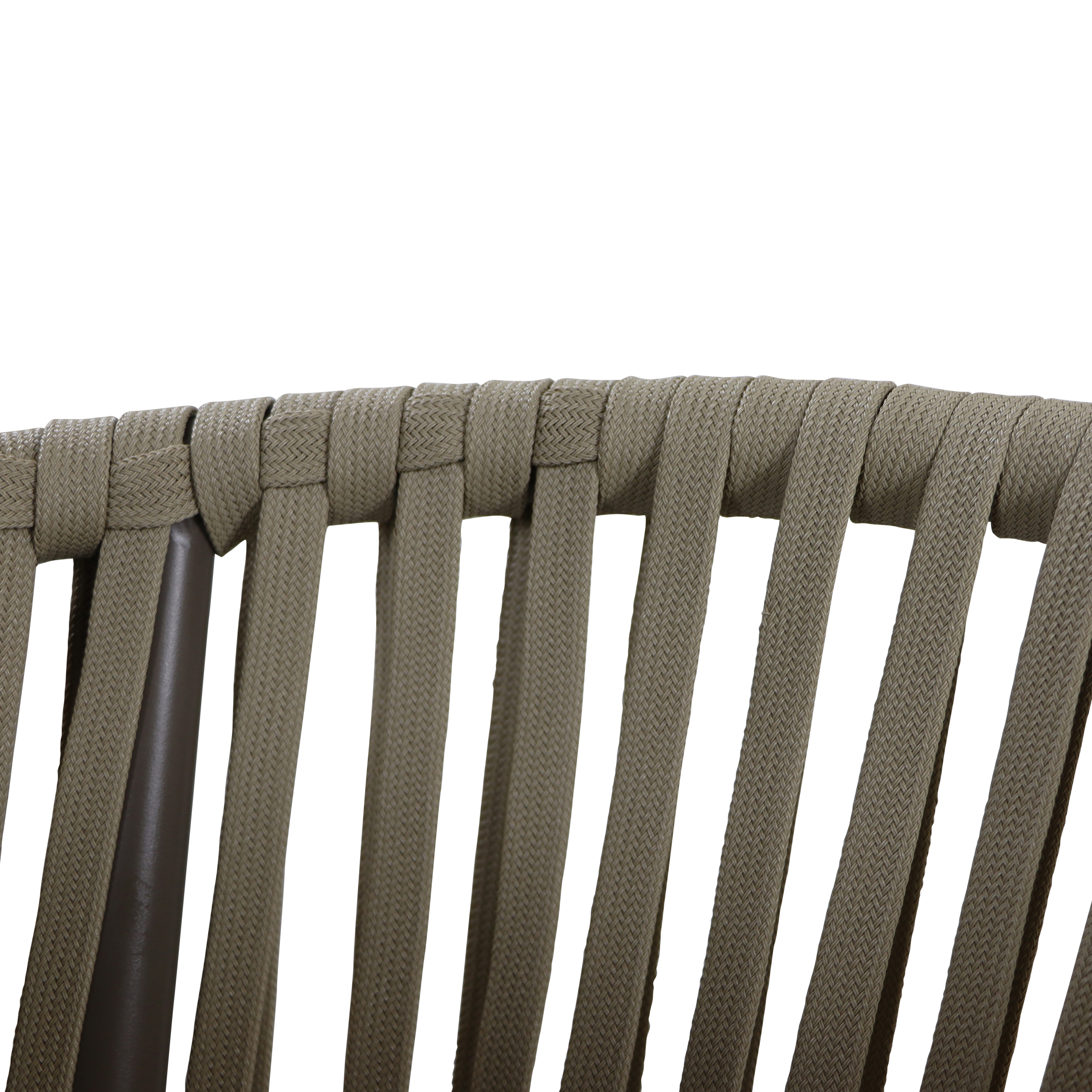 - Taupe chairs with khaki-coloured polyester cushions and textile woven flat ropes.